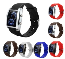 Ультрамодные часы с индикатором недели, даты, времени суток и текущего часа. Индикатор часа стиллизован под спидометр автомобиля. Мотивирует использовать каждый остаток уходящего часа! Браслет из каучука: черный, синий или хаки - на выбор. Доставка по России - бесплатная!