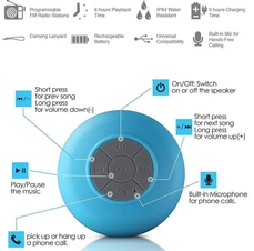 Колонка крепится к стене или потолку! Может использоваться в душе (водонепроницаема!). Радио, воспроизведение смартфона по блю тус, устройство громкой связи. Не требует электросети, безпроводное подключение. Может включаться в ваше отсутствие на стене или потолке со стороны шумных соседей посредством присоски. Черный, белый, голубой цвет. Доставка по России - бесплатная! Может быстро зарядится от MFJS!